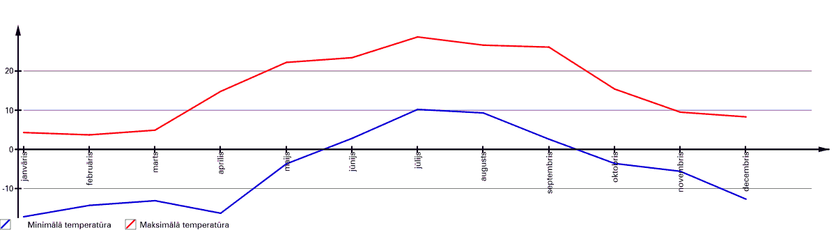 | Februāris | -14.30° | 3.70° | 18.00° | 27.40 mm |