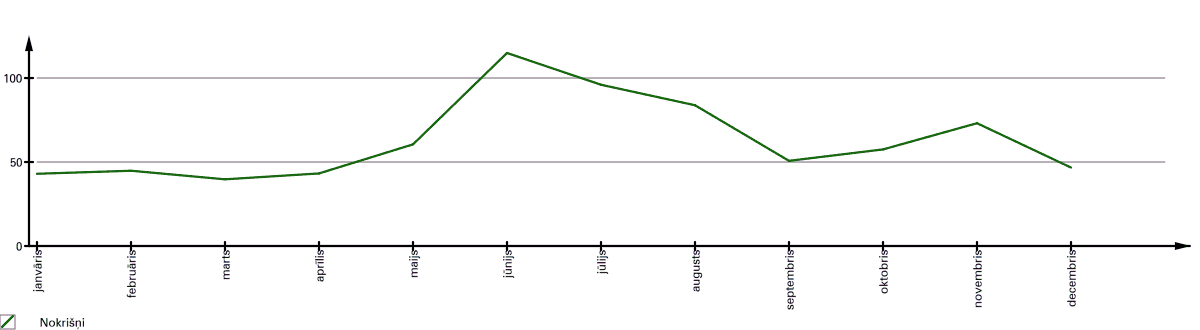 | Nokrišņi >10 mm | 17 dienas | 248.60 mm |