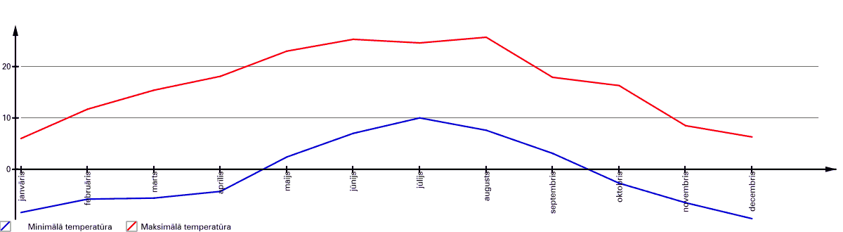 | Janvāris | -8.40° | 6.00° | 14.40° | 93.30 mm |