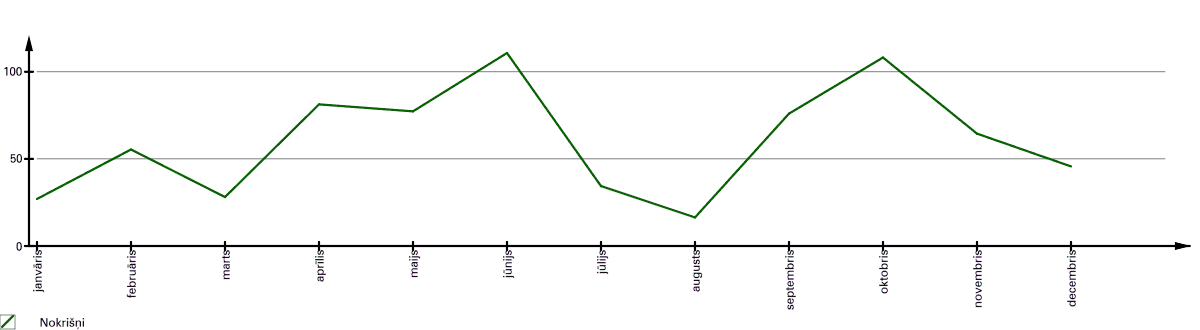 | Nokrišņi >10 mm | 16 dienas | 206.40 mm |