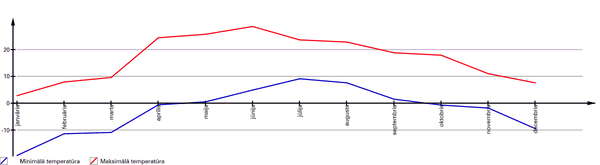 | 2000 | Min temp. | Max temp. | Amplitūda | Nokrišņi |