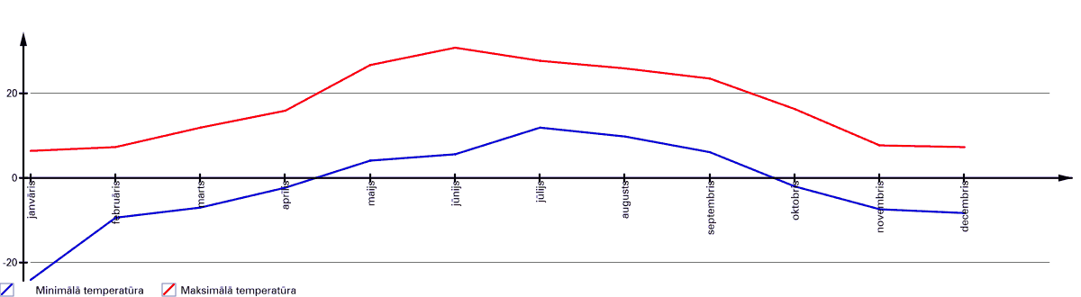 | Jūnijs | 5.60° | 30.80° | 25.20° | 97.70 mm |