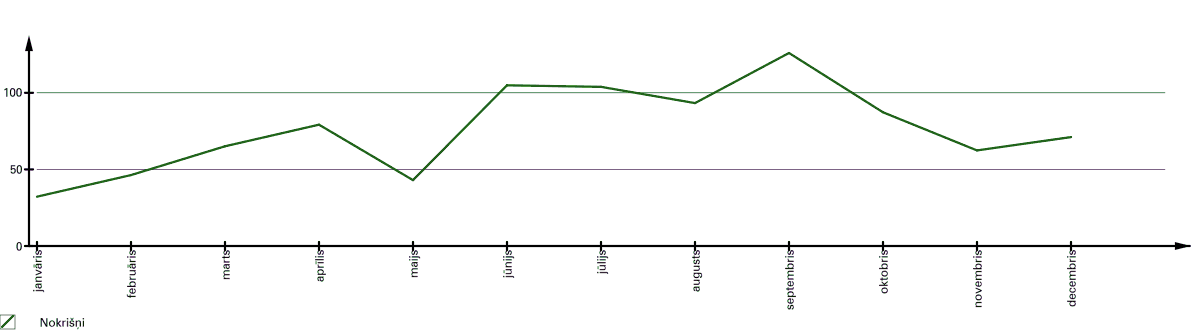 | Nokrišņi >10 mm | 24 dienas | 326.90 mm |